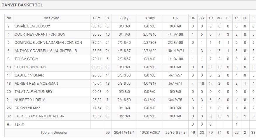 Ο Νέιτ Γουόλτερς έκανε τα πάντα (20π., 4ασ. 4ρ.) για να νικήσει η Μπεσίκτας, αλλά η Γκαζιάντεπσπορ πανηγύρισε τη νίκη με 80-78. Για τους νικητές ξεχώρισε ο Καναδός Άντι Ράουτινς με 22 πόντους και 7 ριμπάουντ.