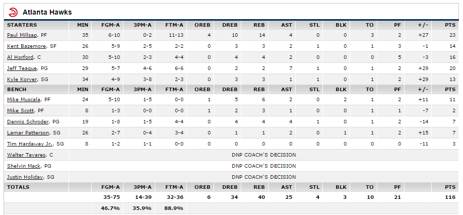Νίκη για τους Χοκς με 116-101 επί των Γκρίζλις.