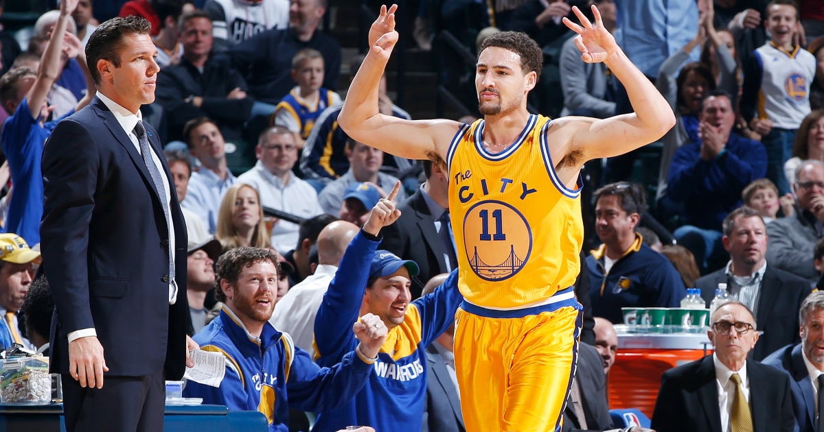 — Golden St. Warriors (@warriors) December 9, 2015HALF of #KlayThompson's first half treys on @csnauthentic & @nbatv https://t.co/Vq2WvffFnj