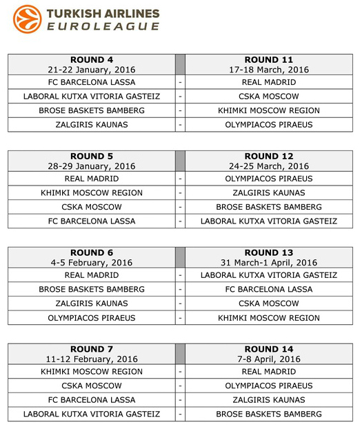 Οι παίκτες του Γιάννη Σφαιρόπουλου θα υποδεχθούν τους Καταλανούς λίγες μέρες πριν το τέλος της χρονιάς στον Πειραιά, ενώ θα κλείσουν τη δεύτερη φάση και πάλι στο φαληρικό στάδιο, φιλοξενώντας την ΤΣΣΚΑ Μόσχας στις αρχές Απρίλη.