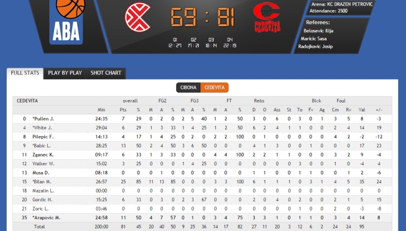 Η κατάταξη: Τσεντεβίτα 13-3, Μπουντούτσνοστ 13-2, Ερυθρός Αστέρας 11-4, Μέγκα 10-5, Ζαντάρ 7-8, Ταϊφούν 7-8, Κρκα 7-8, ΜΖΤ 6-9, Ολίμπια Λιουμπλιάνα 6-9, Παρτιζάν 6-9, Τσιμπόνα 6-10, Ιγκοκέα 5-10, Μέταλατς 5-10, Σούτιεσκα 4-11