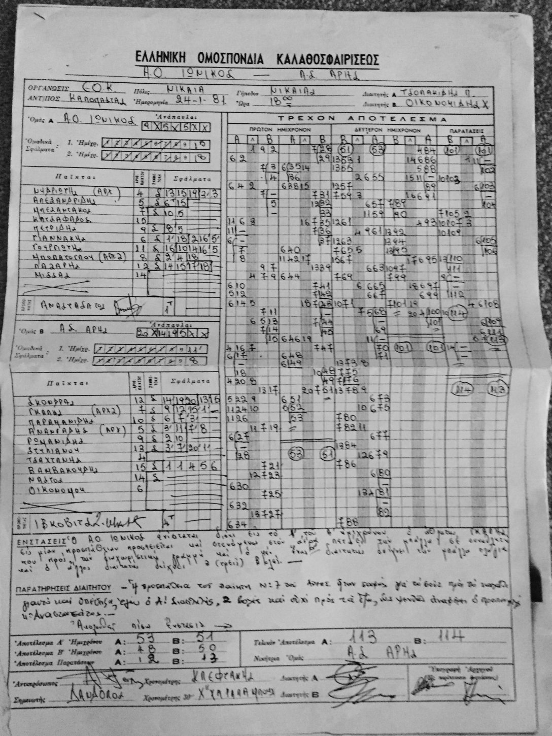Ιδού για την ιστορική τεκμηρίωση του πράγματος, οι συνθέσεις των δυο ομάδων: