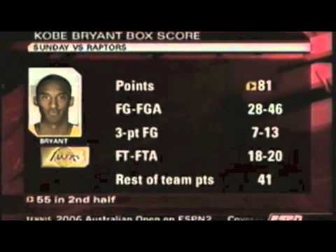 Εκείνο το βράδυ της 22ας Ιανουαρίου του 2006 οι Λέικερς νίκησαν τους Τορόντο Ράπτορς με 122-104, προεξάρχοντος του Κόμπε ο οποίος σε 41 λεπτά και 56 δευτερόλεπτα πέτυχε 81 πόντους (26 στο πρώτο ημίχρονο και 55 στο δεύτερο) με 21/33 δίποντα, 7/13 τρίποντα, 18/20 βολές, ενώ «έγραψε» επίσης έξι ριμπάουντ, δυο ασίστ, τρία κλεψίματα, μία τάπα και τρία λάθη. Στη δική του ραψωδία ο Τσάμπερλεν είχε βάλει τους 100 πόντους επιχειρώντας 63 σουτ και ευστοχώντας σε 28 βολές, που μάλιστα ποτέ δεν ήταν το φόρτε του .