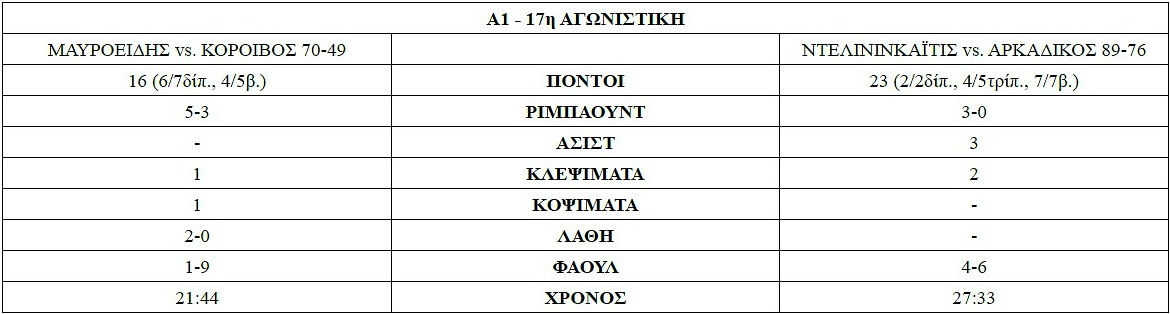 Αμφότεροι βοήθησαν τις ομάδες τους να επικρατήσουν των Κοροίβου (70-49 στις 6/2) & Αρκαδικού (89-76 στις 6/2) αντιστοίχως και το έκαναν με τον καλύτερο δυνατό τρόπο.