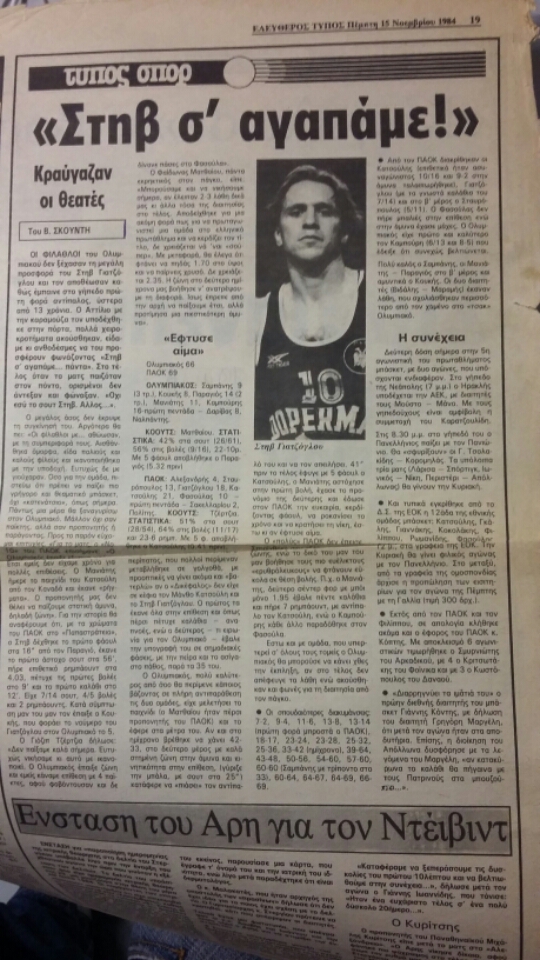 Το ημερολόγιο έδειχνε 14 Νοεμβρίου του 1984 και ενώ ο Αρης νικούσε στο Αλεξάνδρειο τον Παναθηναϊκό με 78-70, ο ΠΑΟΚ περνούσε δια πυρός και σιδήρου από το “Παπαστράτειο” με σκορ 69-66. Ενα ματς που δεδομένης της διαφοράς που χώριζε εκείνη την εποχή τις δυο ομάδες στην ποιότητα και στους στόχους δεν θα είχε ιδιαίτερη σημασία, ούτε θα απασχολούσε τους ιστορικούς του μέλλοντος...