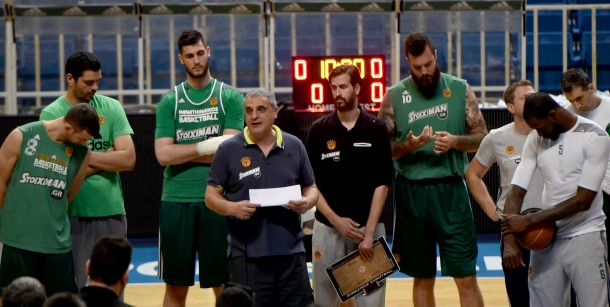 Έπειτα, μπήκαν στην κεντρική σάλα περίπου στις 17:30 το απόγευμα και χειροκρότησαν τους παίκτες κατά την είσοδό τους στο παρκέ και τους ζήτησαν... Πρωτάθλημα για τον Δημήτρη Διαμαντίδη: «Ξέρετε τι σημαίνει Παναθηναϊκός,Είμαστε εδώ για να σας στηρίξουμε. Είμαστε οικογένεια κι αυτό πρέπει να φαίνεται στα δύσκολα. Πρέπει να καταλάβουμε όλοι ότι αυτή είναι η τελευταία χρονιά του Μήτσου και πρέπει να τελειώσει την καριέρα του με ένα πρωτάθλημα. Ξέρουμε πολύ καλά τι μπορείτε να κάνετε και τις δυνατότητές σας,. Πρέπει να παλέψουμε όλοι μαζί και να τα καταφέρουμε. Ο καθένας ξεχωριστά να καταλάβει γιατί πρέπει να παλέψει για να πάρει το πρωτάθλημα. Σίγουρα ο Μήτσος είναι ένας μεγάλος λόγος, αλλά όλοι πρέπει να έχουμε ένα κίνητρο για να το πετύχουμε».