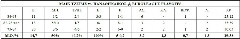 Ο Παναθηναϊκός θα προτιμούσε αλλιώς, αφού, πριν τον κάνει δικό του, βρέθηκε για λίγο στη... λίστα θυμάτων του. Η ικανότητά του στο σκοράρισμα κυρίως από δική του δημιουργία, η ταχύτητά του κι η ενίοτε επιθετική άμυνά του ήταν μόνιμος μπελάς στα playoffs της Euroleague, όπου ο ίδιος κι οι συμπαίκτες του έχουν να λένε πως τον απέκλεισαν με σκούπα (3-0). Μάλιστα η τελευταία εμφάνισή του στο ΟΑΚΑ, όπου πια μπορεί ν' αποκαλεί σπίτι του, ήταν η δεύτερη πιο παραγωγική (20 πόντους με 3/6δίπ., 4/6τρίπ., 2/2β., 6ρ., 2ασ., 2κλ., 1κοψ., 2λ. σε 30:05) της δεύτερης χρονιά του στη διοργάνωση (27π. η career-high επίδοσή του).