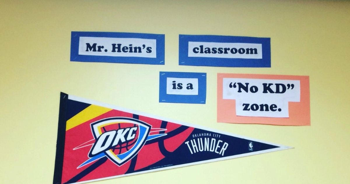 Παίρνοντας... ασίστ απ' τον Κέβιν Ντουράντ κι απ' τη μετεγγραφή του απ' τους Θάντερ στους Ουόριορς, ο Τάκερ Χάιν έγραψε με αυτοκόλλητα στον τοίχο πως «Η τάξη του κ. Χάιν είναι απαγορευμένη ζώνη για τύπους όμοιους του KD. Δε θα πάρετε τον εύκολο δρόμο. Δε θα με αφήσετε και δε θα σας αφήσω. Δε θ' αφήσετε την πρόκληση».