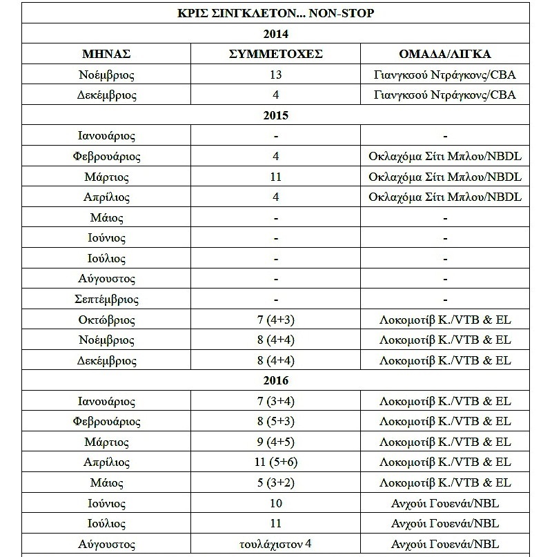 Δείτε τις συμμετοχές του μετά απ' την τελευταία του ως NBAer στις 12/4/14: