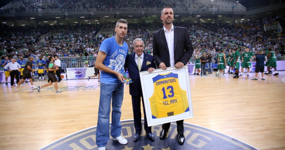Η Μακάμπι Τελ Αβίβ βράβευσε το Δημήτρη Διαμαντίδη για την προσφορά του στο μπάσκετ, στο ημίχρονο της αναμέτρησης του «τριφυλλιού» με την «ομάδα του λαού», δωρίζοντάς του μια φανέλα της ομάδας τους με το όνομα και τον αριθμό του Διαμαντίδη.