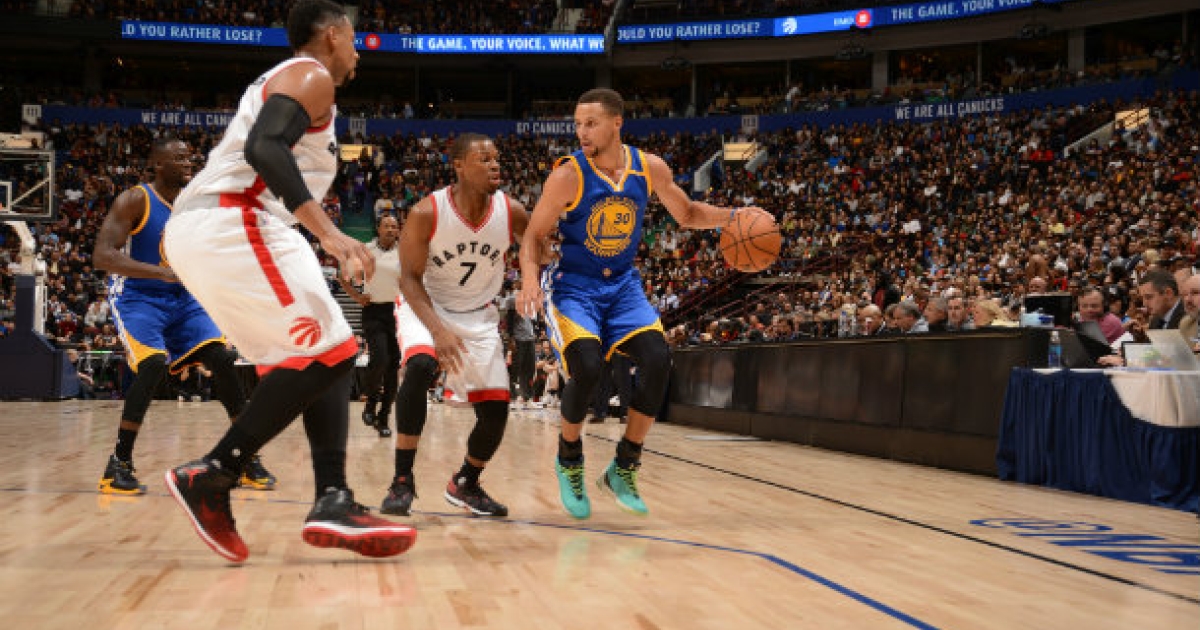 Ο Αντρέ Ιγκουαντάλα προσπάθησε να βρει τον Κέβιν Ντουράντ με πάσα πίσω από την πλάτη όμως η προσπάθειά του κατέληξε στον πάγκο των Ουόριορς. Ο Στεφ Κάρι παρακολουθούσε όρθιος την προσπάθεια των συμπαικτών του όταν η μπάλα έφτασε στα χέρια του και αυθόρμητα... σούταρε!