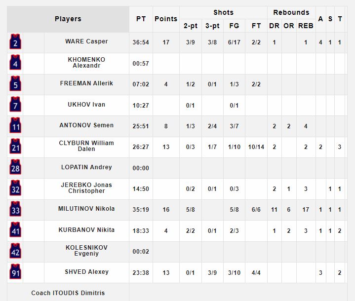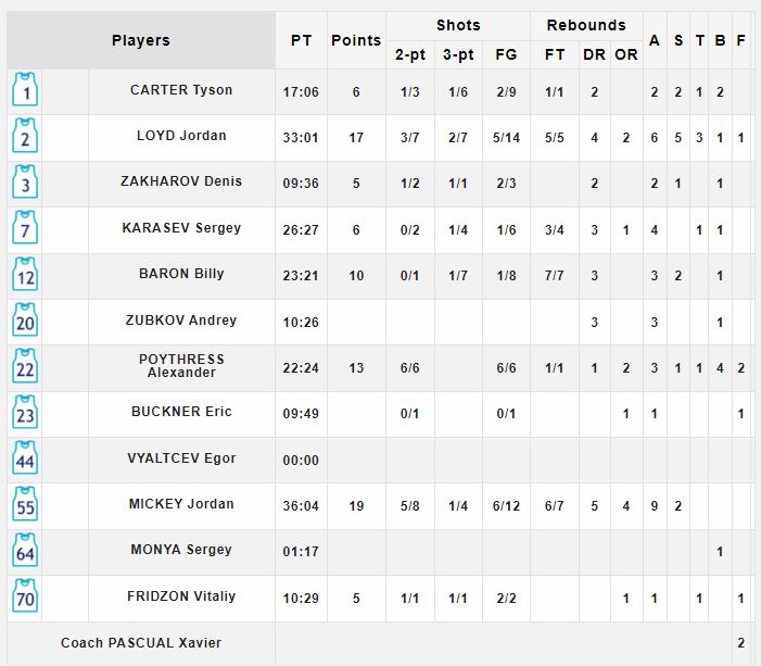 Ο Τζόρνταν Μίκι ήταν ο μεγάλος πρωταγωνιστής του Game 7 με 19 πόντους και 9 ριμπάουντ, ενώ ακολούθησαν οι Τζόρνταν Λόιντ (17π., 6ριμπ.), Άλεξ Πόιθρες (13π., 6/6δίπ.). Για την ΤΣΣΚΑ Μόσχας που υπέστη μεγάλο κάζο ύστερα από 10 χρόνια, ο Κάσπερ Ουέρ είχε 17 πόντους ενώ ο Μιλουτίνοφ 16 πόντους και 17 ριμπάουντ.