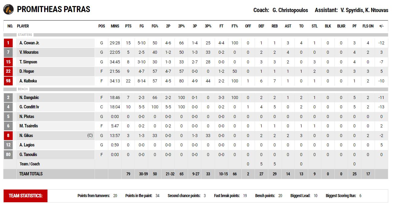 ΤΟ ΣΤΑΤΙΣΤΙΚΟ ΤΟΥ ΑΓΩΝΑ: Οι 9 ασίστ του Λι (σ.σ. οι μισές του Παναθηναϊκού) και το εξαιρετικό 65% του Προμηθέα στα δίποντα με 21/32!