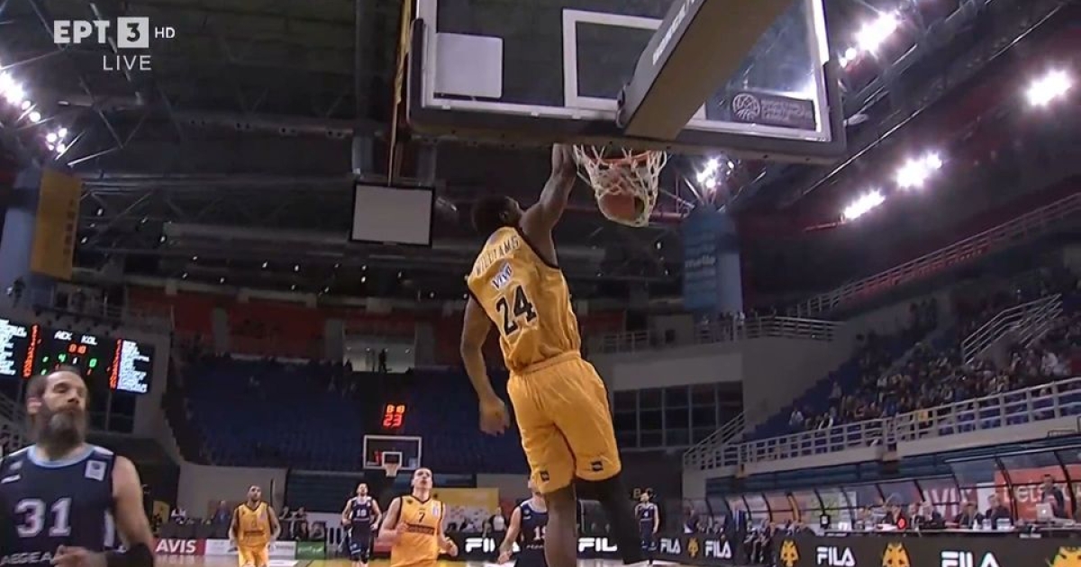 Τα κάνει όλα και συμφέρει ο παίκτης της ΑΕΚ κόντρα στον Κολοσσό. Ο Κένι Γουίλιαμς έκλεψε, πάτησε... γκάζι και κάρφωσε εντυπωσιακά στο καλάθι των Ροδιτών.