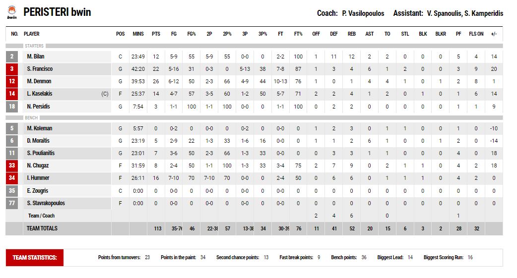 ΤΟ ΣΤΑΤΙΣΤΙΚΟ ΤΟΥ ΜΑΤΣ: Το επί μέρους σκορ στη 2η παράταση, 17-3 υπέρ του Περιστερίου.