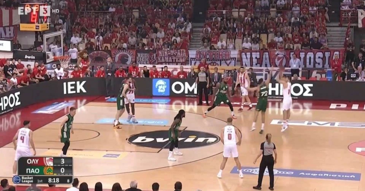 Ο Ολυμπιακός υποδέχεται τον Παναθηναϊκό στο Game 1 των τελικών της Basket League και ο Σάσα Βεζένκοβ πέτυχε το δεύτερο συνεχόμενο τρίποντο των Πειραιωτών έπειτα από εκείνο του Μιχάλη Λούντζη, σκοράροντας μπροστά στον Λευτέρη Μαντζούκα για το 6-0 στο 2'.