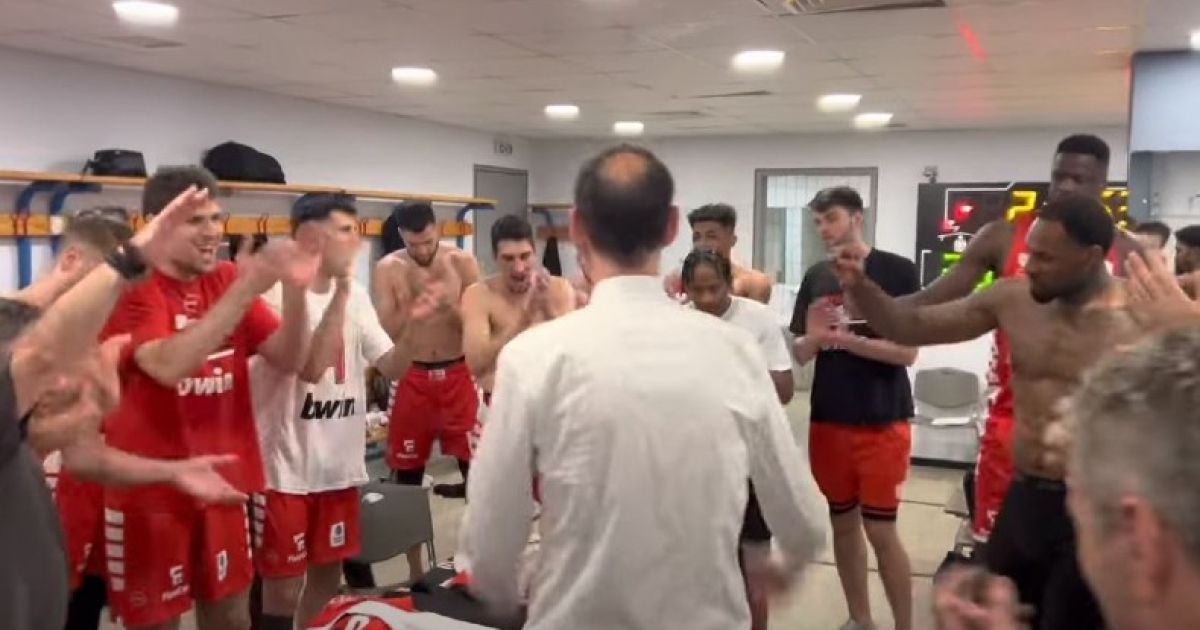 «Σπουδαίου συμπαίκτες, σπουδαίοι παίκτες, με τρομερή ατμόσφαιρα και χημεία... Όλοι έχουν εγωισμό και σκέφτονται πράγματα για την καριέρα τους, αλλά όλοι μαζί σκεφτόμασταν για την ομάδα μας! Για αυτό καταφέραμε τόσα πράγματα φέτος. Αυτό που κάναμε ήταν ιστορικό... Το πώς τελειώσαμε αυτή τη σεζόν κερδίζοντας τον Παναθηναϊκό για 30 πόντους... Έχετε τον θαυμασμό μου παιδιά και τον σεβασμό μου!» είπε στην ομιλία του ο κόουτς των «ερυθρολεύκων» για να ακολουθήσει το «ζντο» στο κέντρο των αποδυτηρίων με ενωμένες γροθιές!