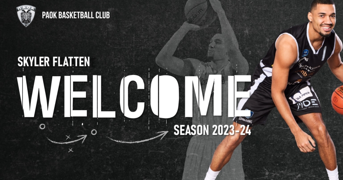 Η ΚΑΕ ΠΑΟΚ mateco ανακοινώνει τη συμφωνία με τον Αμερικανό καλαθοσφαιριστή Skyler Flatten, ο οποίος θα αγωνιστεί στην ομάδα μας τη σεζόν 2023-24. Καλωσορίζουμε τον Skyler Flatten στη μεγάλη οικογένεια του ΠΑΟΚ!