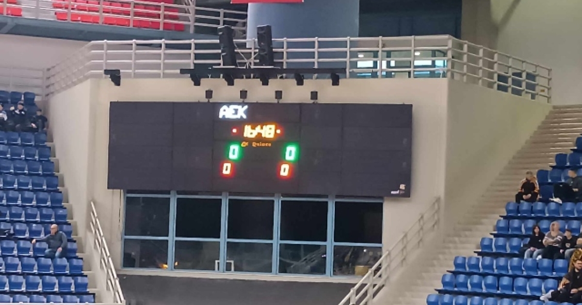 Προσωρινή διακοπή στο ματς της ΑΕΚ με τον Άρη στο κλειστό των Λιοσίων. Υπάρχει ένα πρόβλημα στο χρονόμετρο και έχει γίνει διπλή διακοπή στο ματς στα πρώτα δευτερόλεπτα με το σκορ να είναι στο 2-0.