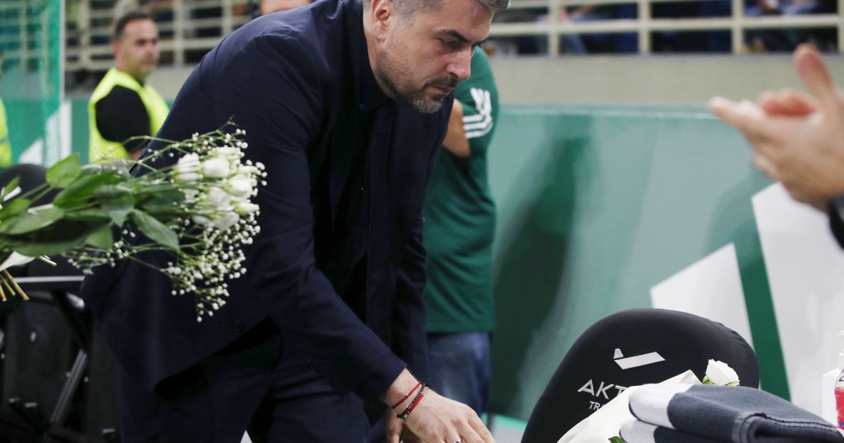Ολυμπιακός: Λεπενιώτης και Μπαφές άφησαν λευκά τριαντάφυλλα στη μνήμη του Παύλου Γιαννακόπουλου, λουλούδια από τους παίκτες για τον Πάρη Δερμάνη