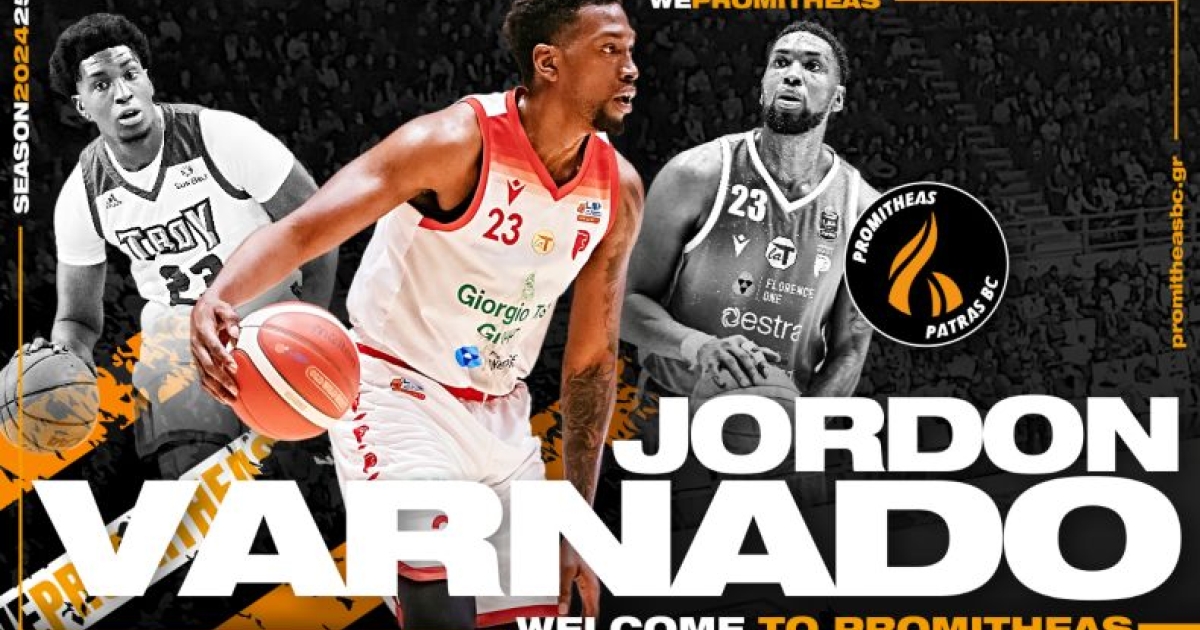 «Η ΚΑΕ Προμηθέας Πάτρας βρίσκεται στην ευχάριστη θέση και ανακοινώνει με χαρά την έναρξη της συνεργασίας με τον αθλητή Jordon Varnado, ο οποίος έρχεται στην Πάτρα για να ενισχύσει τις προσπάθειες της ομάδας μας για την ερχόμενη σεζόν.