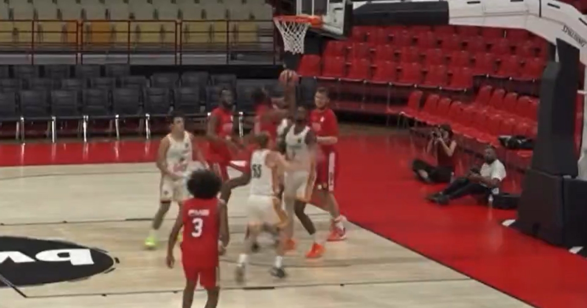 Το πρώτο του καλάθι με τη φανέλα του Ολυμπιακού, έστω και σε φιλικό, προήλθε με φόλοου από επιθετικό ριμπάουντ.