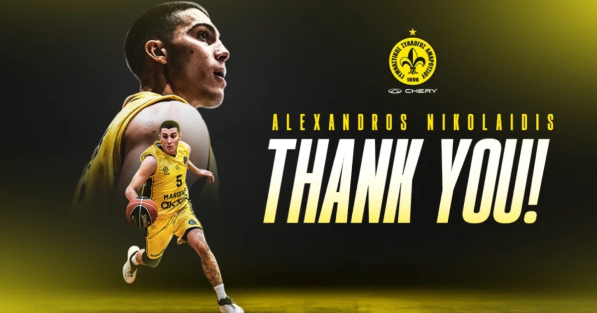 «Η ΚΑΕ Μαρούσι Chery ανακοινώνει την λύση της συνεργασίας της με τον αθλητή Αλέξανδρο Νικολαΐδη. Τον ευχαριστεί για την προσφορά του και του εύχεται καλή συνέχεια στην ζωή και την καριέρα του».