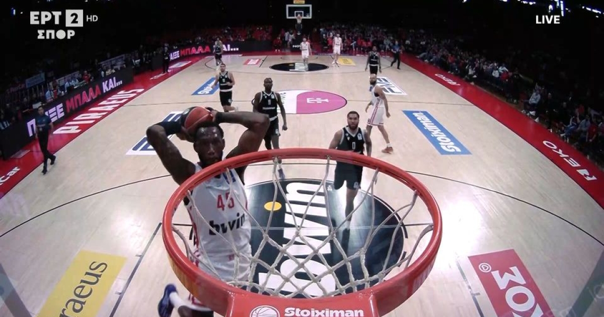 Θέαμα μοίρασε ο ψηλός του Ολυμπιακού κόντρα στον ΠΑΟΚ. Ο Ντόντα Χολ πήρε την πάσα του Φουρνιέ που έκλεψε και έφυγε ανενόχλητος στον αιφνιδιασμό για να καρφώσει εντυπωσιακά.