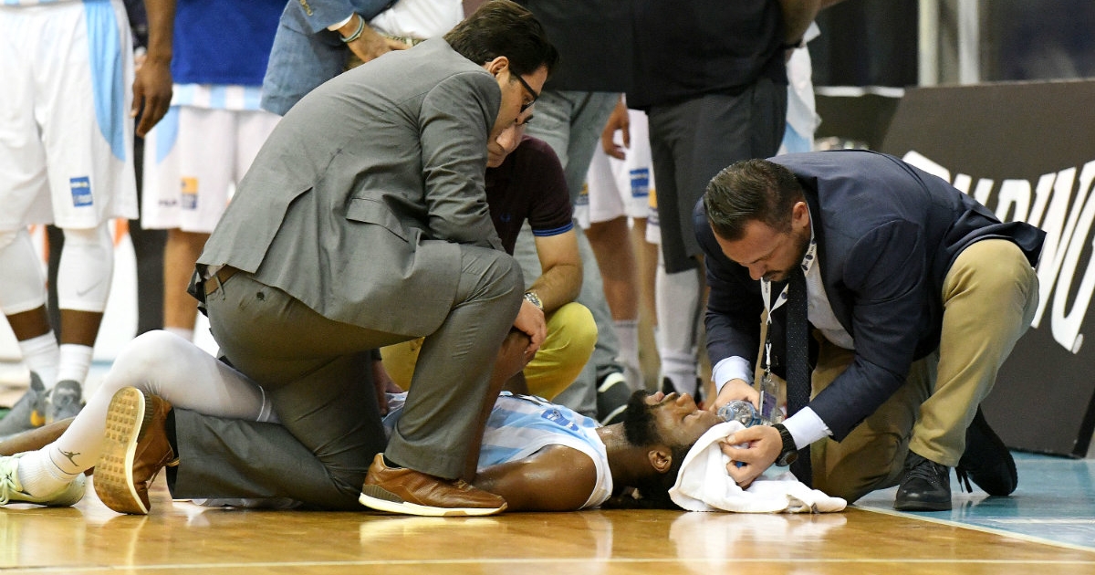Ο Αμερικανός δεν αισθάνθηκε καλά και ζήτησε αλλαγή, πηγαίνοντας προς τον πάγκο της ομάδας του σωριάστηκε στο παρκέ και φυσικά μπήκε άμεσα ο ιατρός για τις πρώτες βοήθειες.