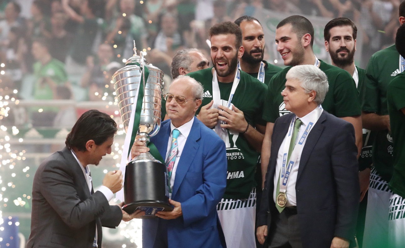 1/6/2017: Στο δεύτερο τελικό με τον Ολυμπιακό αγκαλιά με τον Γιώργο Αγγελόπουλο.