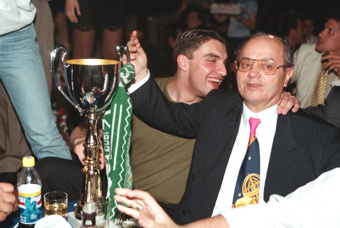 25/5/1998: Η αγκαλιά του στον Σκοτ, στο πρώτο πρωτάθλημα του Παναθηναϊκό κόντρα στον ΠΑΟΚ.