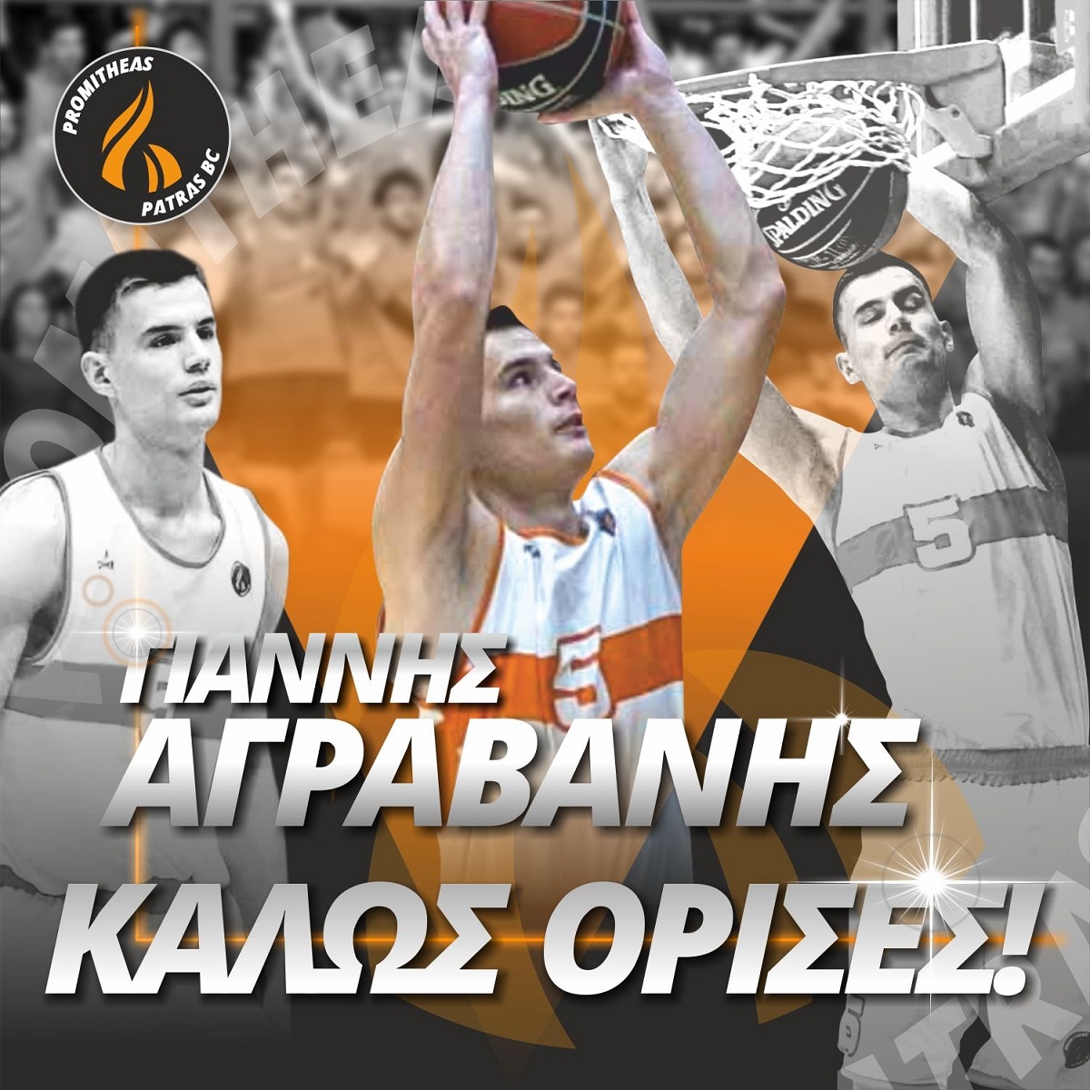 «H KAE Προμηθέας Πάτρας ανακοινώνει την έναρξη της συνεργασίας της με τον Γιάννη Αγραβάνη για τα ερχόμενα 3 χρόνια και τον καλωσορίζει στην Οικογένεια του Συλλόγου. Ο αθλητής κατά την φετινή αγωνιστική χρονιά 2020-21 θα αγωνιστεί ως δανεικός στον Χαρίλαο Τρικούπη Μεσολογγίου.