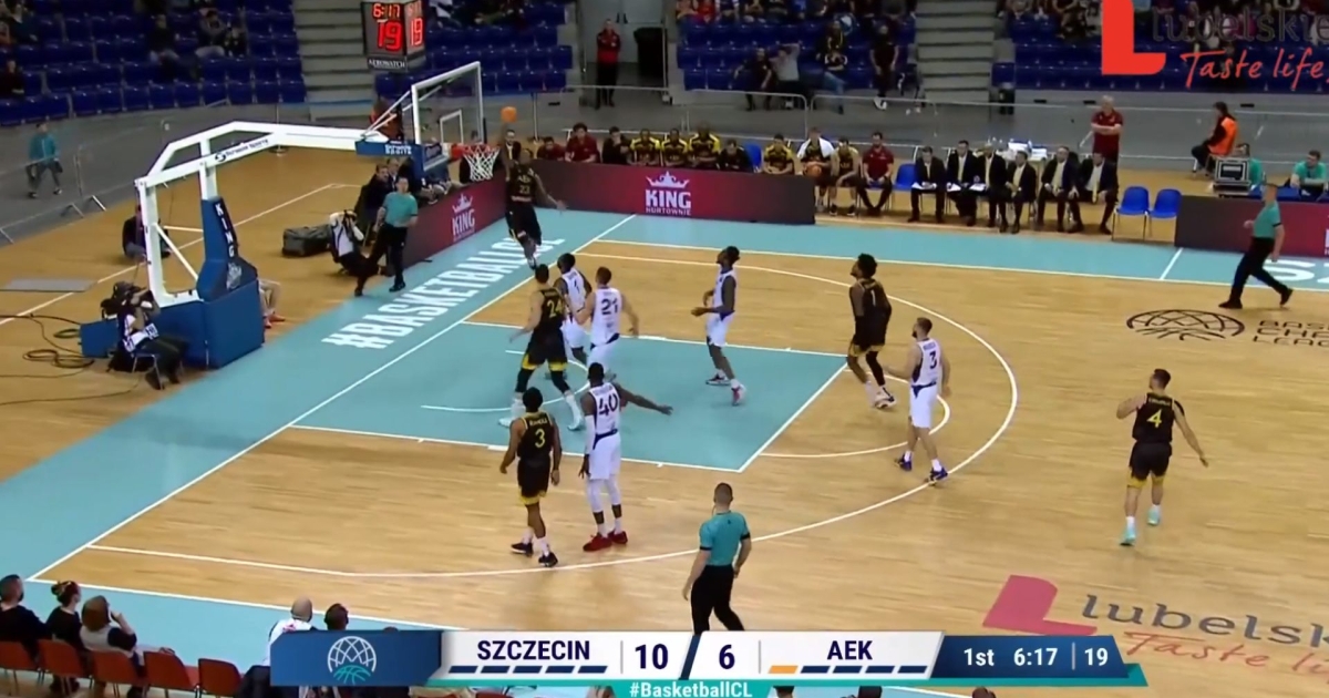 Όπως έχει συμβεί ξανά φέτος, έτσι και τώρα, οι ελληνικές ομάδες έχουν εκπροσώπους στην λίστα των κορυφαίων φάσεων, με τον Μπεν ΜάκΛεμορ μάλιστα να καταλαμβάνει την κορυφαία θέση. Η ΑΕΚ επιβλήθηκε της Στσέτσιν με 86-77 επεκτείνοντας το αήττητο στην Ευρώπη στο 3-0. Κατά την διάρκεια του αγώνα, σε μία από τις πρώτες φάσεις του, ο Ραντλ ύψωσε ψηλά την μπάλα και ο 30χρονος Αμερικάνος κατάφερε να καρφώσει με πολύ εντυπωσιακό τρόπο.