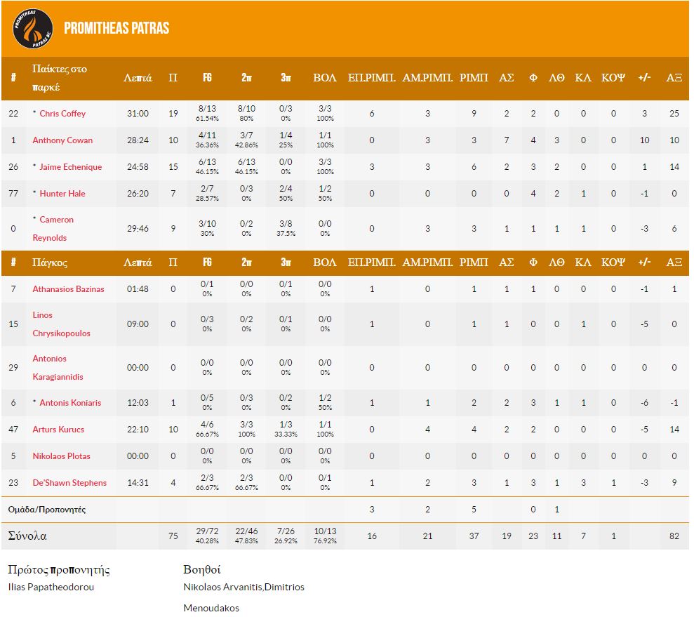 ΠΗΓΕ ΣΤΡΑΦΙ Η ΑΠΟΔΟΣΗ ΤΟΥ: Ο Κρις Κόφι ήταν εξαιρετικός για τον Προμηθέα, ειδικά στο διάστημα του come back έχοντας 19 πόντους με 8/13 σουτ και 9 ριμπάουντ.