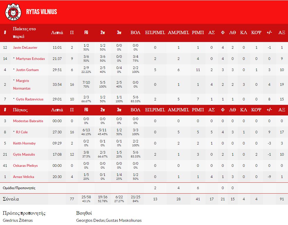 ΣΥΜΠΡΩΤΑΓΩΝΙΣΤΕΣ ΣΤΗ ΝΙΚΗ: Πολύ καλό ματς από τον Μαργκίρις Νορμάντας με 16 πόντους (5/5 δίποντα, 2/5 τρίποντα) και 4 ασίστ. Καθοριστικός ο Γκόραμ (6π., 11ριμπ.) με την τάπα στο τέλος.