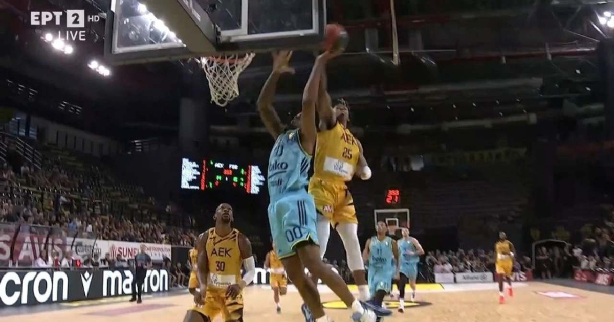 Εντυπωσιακός σε επίθεση και άμυνα ο Αρμς. Ο forward της ΑΕΚ πήρε τα βήματα του Μπέικοτ και τον... κέρασε ένα εντυπωσιακό μπλοκ για να έχει να το θυμάται.