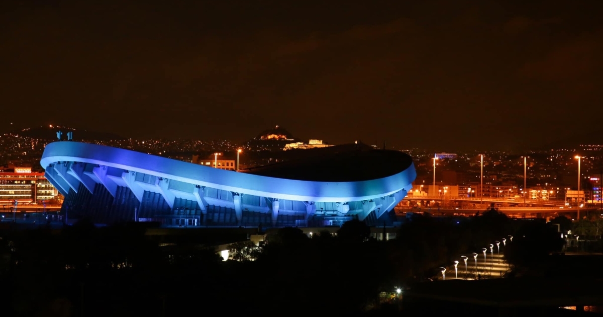 Το Στάδιο Ειρήνης και Φιλίας επέλεξε να φωταγωγηθεί στα χρώματα της ελληνικής σημαίας τιμώντας την ιστορία της χώρας μας.