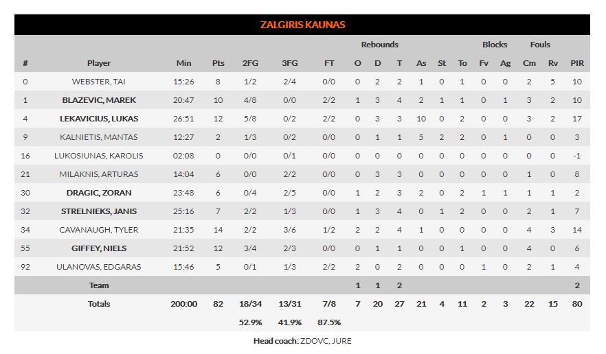 Η άλλη μισή αλήθεια έχει να κάνει με το ανταγωνιστικό πρόσωπο που παρουσίασε η λιθουανική ομάδα για 32 λεπτά καθώς ήταν μέσα στο ματς και σε απόσταση μίας κατοχής (75-72) από τους Μαδριλένους. Όμως στο τέλος «λύγισε» και δεν μπόρεσε να φανεί περισσότερο ανταγωνιστική με αποτέλεσμα να παραμείνει χωρίς νίκη στην φετινή EuroLeague φτάνοντας στις 9 ήττες σε ισάριθμες αναμετρήσεις.