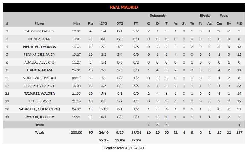 ΤΟ ΣΤΑΤΙΣΤΙΚΟ ΤΟΥ ΜΑΤΣ: To εντυπωσιακό 65% της Ρεάλ στα δίποντα (26/40) αλλά και το γεγονός ότι οι παίκτες του Λάσο υπέπεσαν σε μόλις 8 λάθη έχοντας μοιράσει 21 ασίστ!