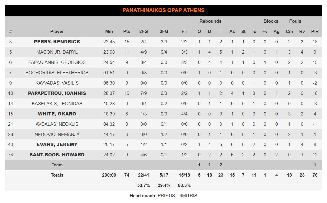 Οι Παπαπέτρου (16π.) και Πέρι (15π.) μπορεί να ήταν «διψήφιοι» στο ματς αλλά ουσιαστικά, και με εξαίρεση το πρώτο οκτάλεπτο, ήταν πόντοι σε στιγμές... χαλάρωσης της ΤΣΣΚΑ. Από την ΤΣΣΚΑ πρώτοι σκόρερ ήταν οι Γκριγκόνις (19π.), Χάκετ (17π.) και Σενγκέλια (16π.)