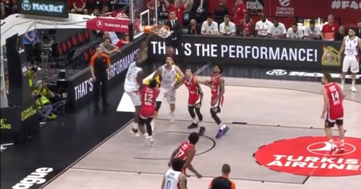Ο Κρις Σίνγκλετον βρήκε τον χώρο να πλησιάσει το καλάθι του Ολυμπιακού και κάρφωσε εντυπωσιακά για την φάση της βραδιάς.