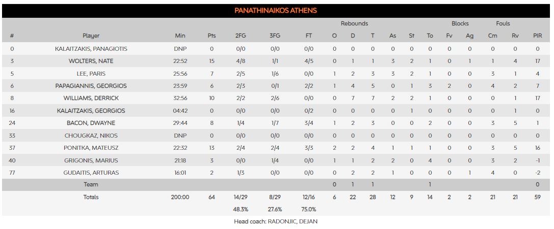 ΤΟ ΣΤΑΤΙΣΤΙΚΟ ΤΟΥ ΑΓΩΝΑ: Η διαφορά στα ριμπάουντ υπέρ της Βίρτους (40-28) και οι 10 περισσότερες ασίστ (22 έναντι 12) σε σχέση με τον Παναθηναϊκό.