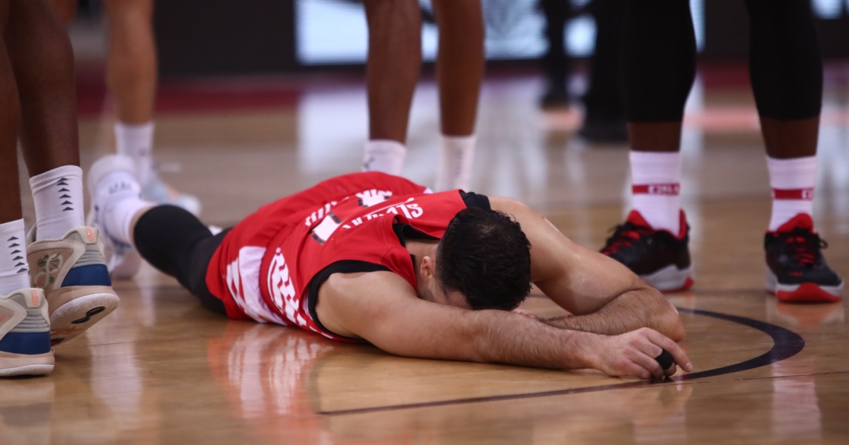 Ο Έλληνας γκαρντ έπεσε άτσαλα στο παρκέ σε μια προσπάθεια να σκοράρει μπροστά από τον Τζάρελ Μάρτιν ωστόσο συνέχισε κανονικά το παιχνίδι.