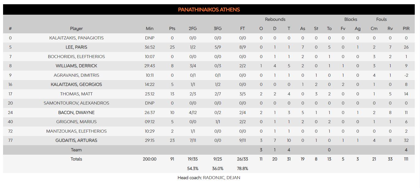 MVP: Ο Κρις Τζόουνς συγκέντρωσε 33 βαθμούς στο ranking έχοντας 24 πόντους με 6/7 δίποντα, 2/3 τρίποντα, 6/7 βολές, 5 ασίστ, 4 ριμπάουντ, 1 κλέψιμο και μόλις 1 λάθος σε 24:43.