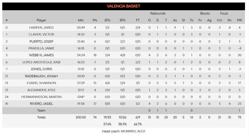 Ο Λεκάβιτσους με 16 πόντους ήταν ο πρώτος σκόρερ των νικητών, ενώ ακολούθησε ο Μπραζντέικις με άλλους 15 πόντους. Στον αντίποδα αυτή η ήττα ήταν καταδικαστική για τη Βαλένθια καθώς αποκλείστηκε και μαθηματικά από τα προημιτελικά της διοργάνωσης.
