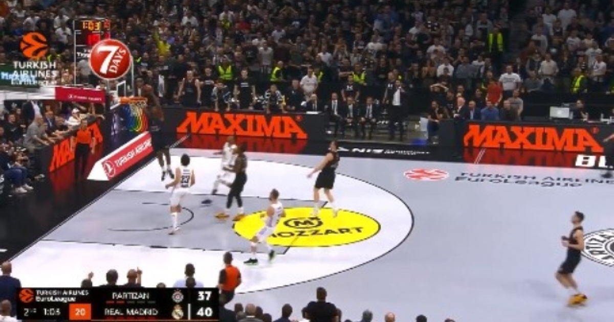 Θέαμα μοιράζει η Παρτίζαν στο ματς κόντρα στην Ρεάλ. Ο Άντζουσιτς έφυγε στον αιφνιδιασμό και ύψωσε για τον ΛεΝτέι που δεν είχε πρόβλημα να καρφώσει εντυπωσιακά.