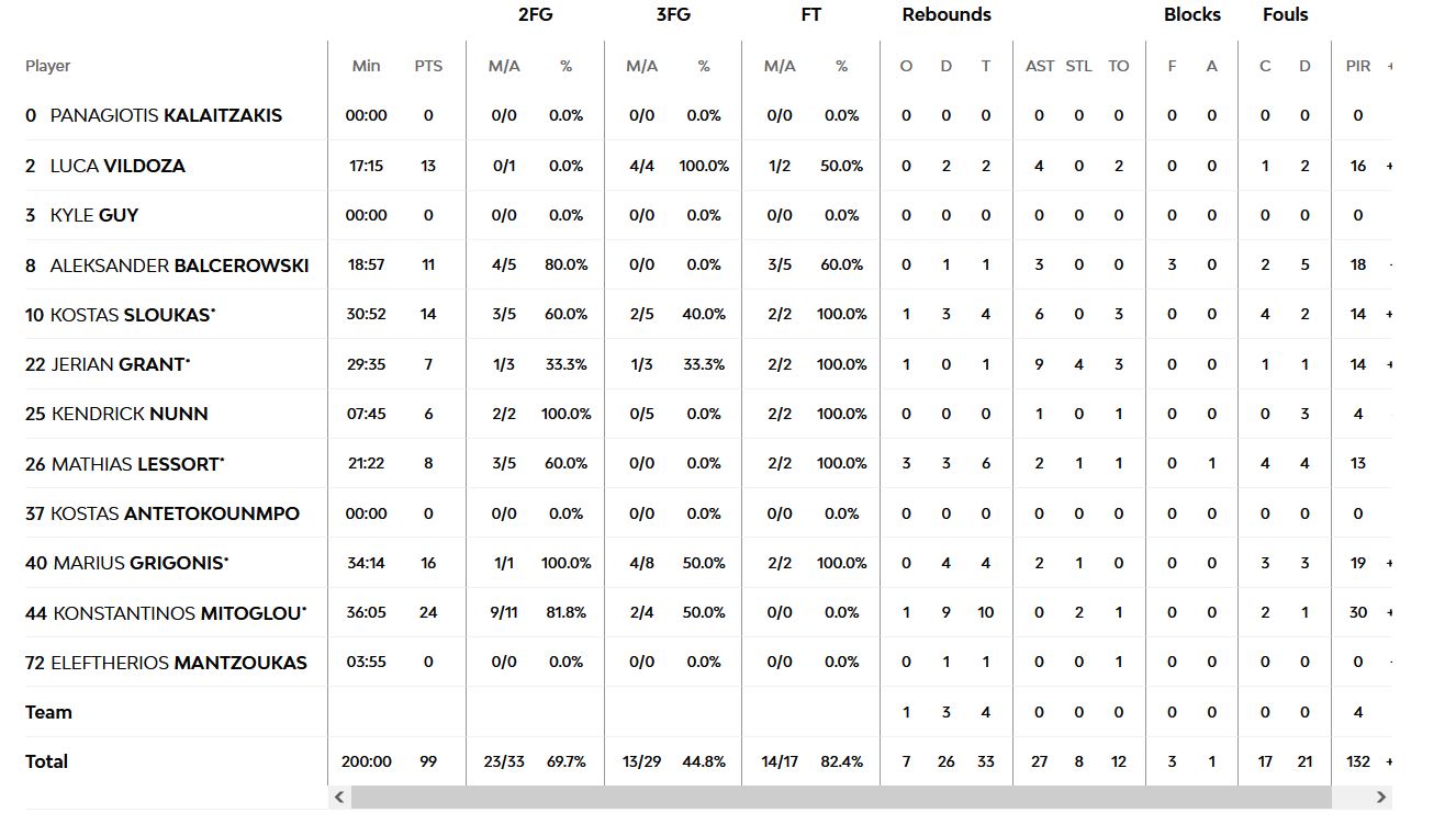 Ο Παναθηναϊκός είχε πέντε παίκτες με διψήφιο αριθμό πόντων και τον Ντίνο Μήτογλου να τελειώνει το παιχνίδι