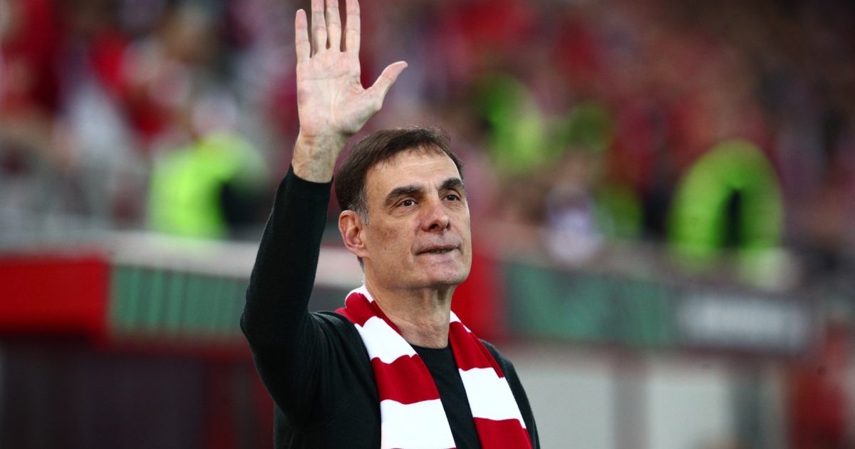 Ο Γιώργος Μπαρτζώκας αποθεώθηκε από το κοινό στο «Γ.Καραϊσκάκης», προτού αρχίσει ο επαναληπτικός ημιτελικός ανάμεσα στον Ολυμπιακό και την Αστον Βίλα.