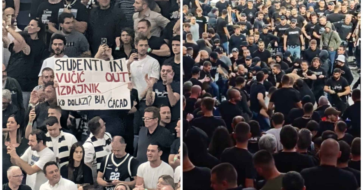 Na utakmici Partizan - Pariz Ćaci napali navijača koji je nosio transparent podrške studentima. Cela sala ustala je u odbranu navijača i transparenta uz skandiranje protiv Vučića. pic.twitter.com/yr9R8eoWq1