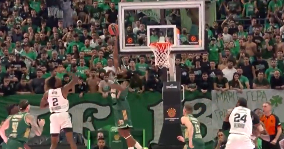 Πιο συγκεκριμένα, ο Αμερικανός σέντερ, έκανε μια εντυπωσιακή τάπα, απέναντι στον Μίλτον και ξεσήκωσε τον κόσμο του «τριφυλλιού».